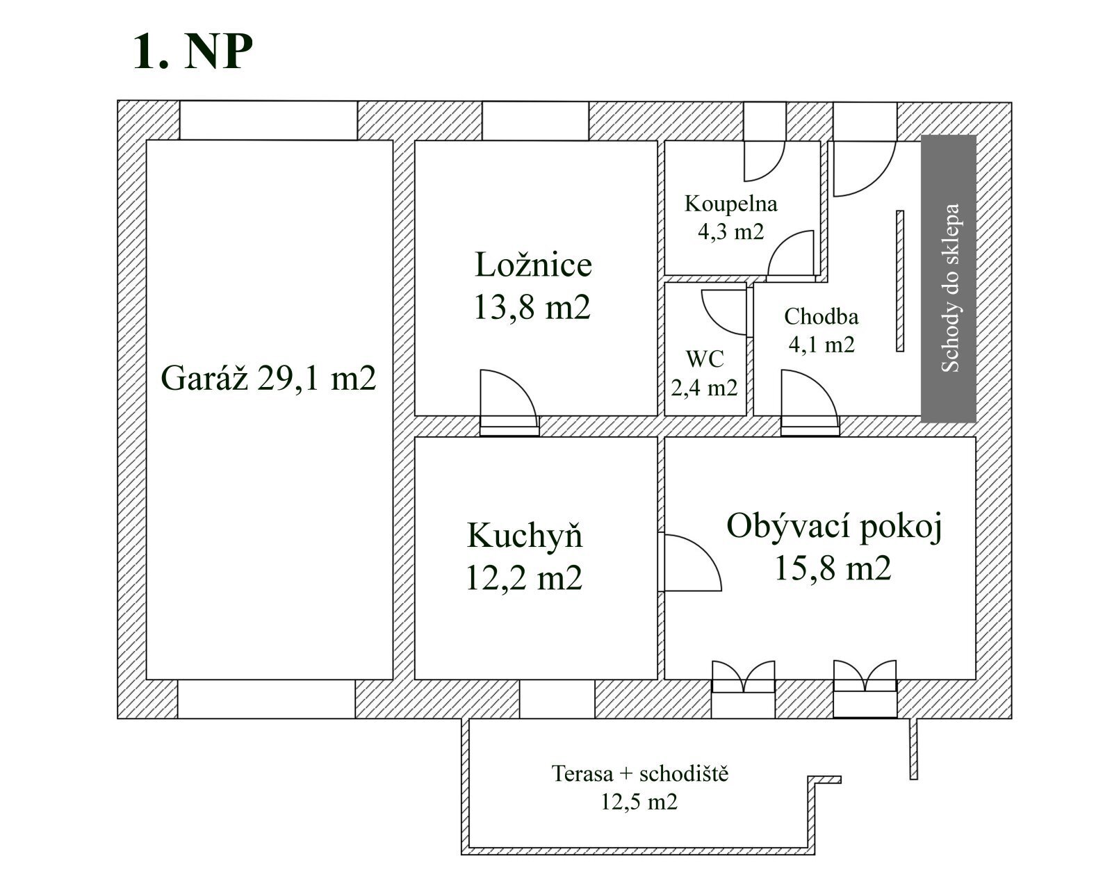 • prostorná garáž (29,1 m²) se dvěma vraty na dálkové ovládání