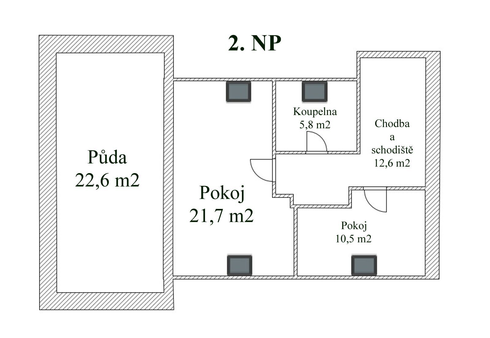 • půda s potenciálem vybudování dalšího pokoje (22,6 m²)