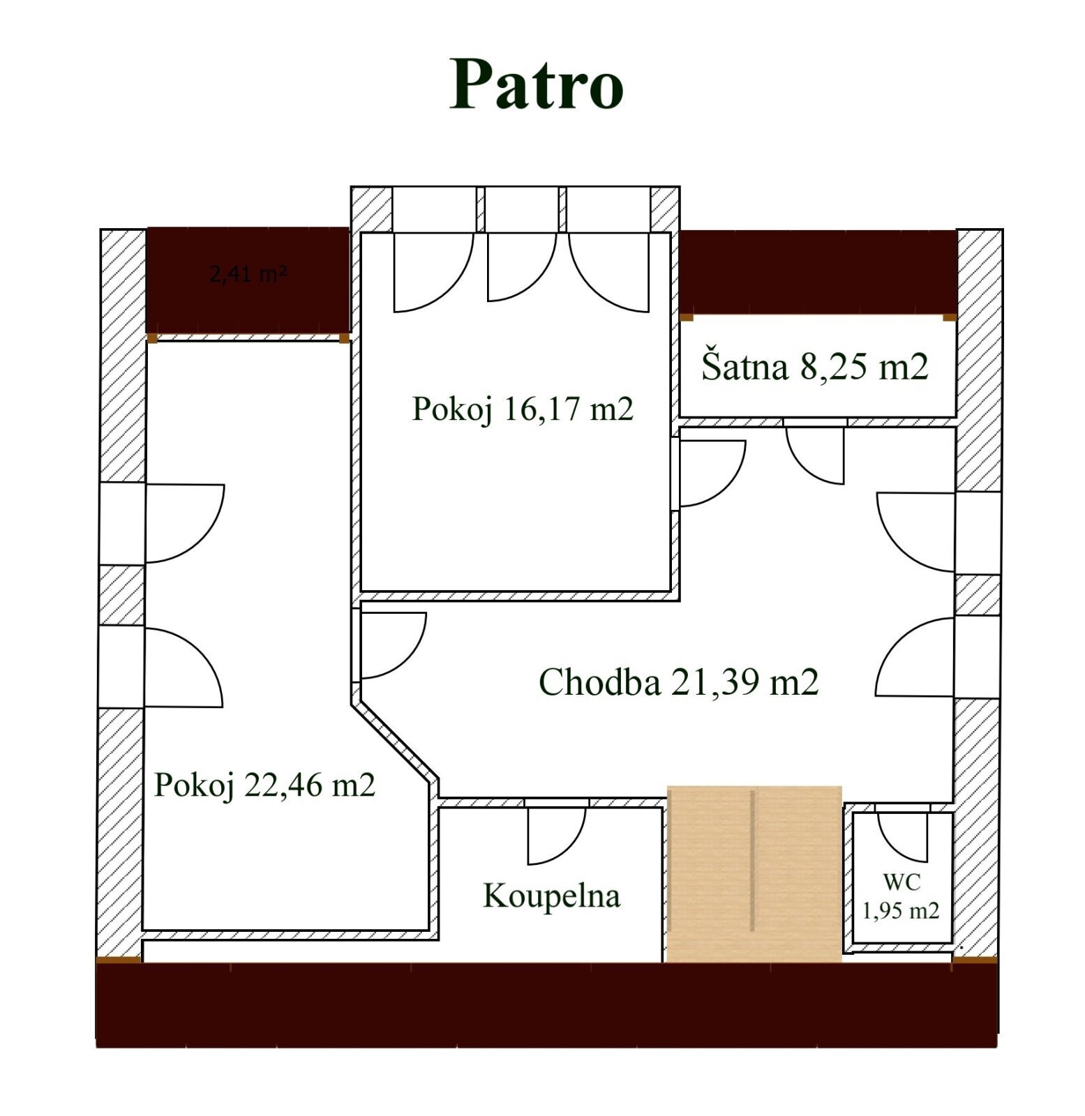 • Samostatná toaleta (1,95 m²)