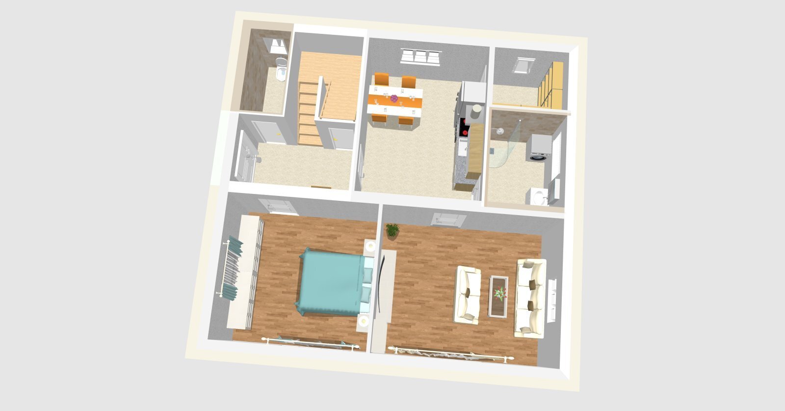 • Druhá ložnice (22,46 m²) – možnost rozdělení na dvě samostatné místnosti